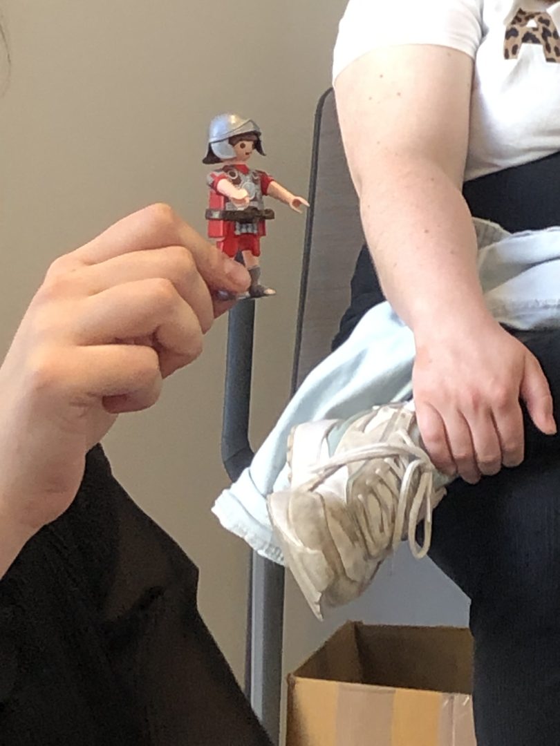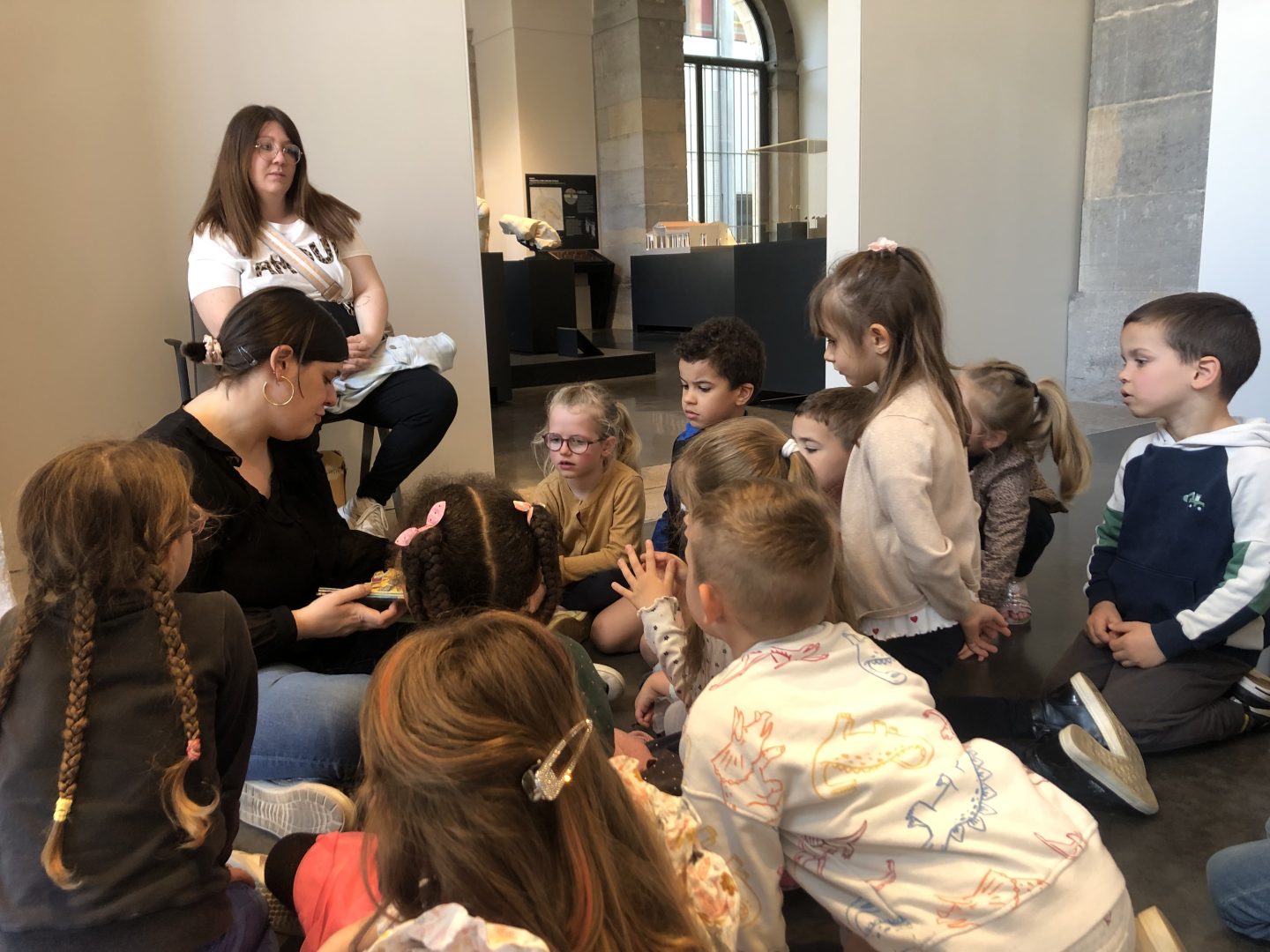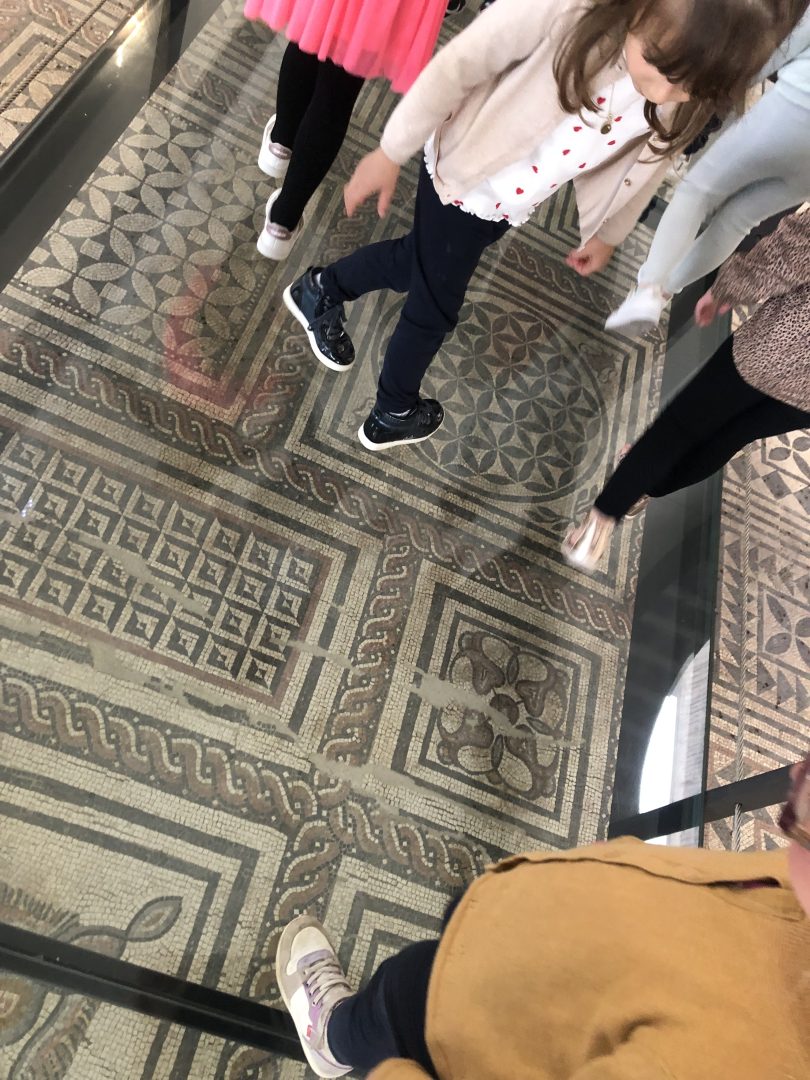 Lundi 14 avril nous sommes allés au musée des beaux arts à Besançon pour découvrir des objets de l’époque gallo-romaine, et notamment de belles mosaïques très anciennes ! Nous avons passé du temps devant le médaillon de Neptune, le Dieu des eaux, triomphant debout sur un char tiré par quatre chevaux. Cette mosaïque antique très rare et quasiment intacte, datant du début du IIe siècle, avait été mise au jour en 1973 dans le sous-sol du centre-ville de Besançon, lors de la construction du siège EDF de l’époque.